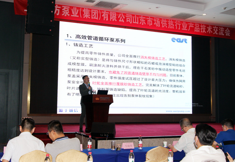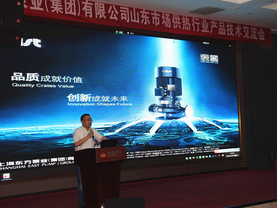 2020年5月30日,由上海東方泵業集團供熱行業總部與濟南分公司承辦的2020年nian山shan東dong市shi場chang供gong熱re行xing業ye產chan品pin技ji術shu交jiao流liu會hui,在zai長chang清qing西xi城cheng泉quan盈ying酒jiu店dian三san樓lou多duo媒mei體ti會hui議yi室shi隆long重zhong召zhao開kai。主zhu持chi人ren為wei負fu責ze長chang清qing片pian區qu業ye務wu主zhu任ren譚tan韌ren,會hui議yi曆li時shi三san小xiao時shi,集ji團tuan公gong司si供gong熱re行xing業ye總zong部bu總zong經jing理li董dong超chao、副總經理黃建華以及濟南分公司總經理劉彥國、副總經理生曉華、技術經理王佰新出席了本次交流會議。參會嘉賓均為長清區域設備製造龍頭企業35家公司,共計116名貴賓光臨本次交流會。