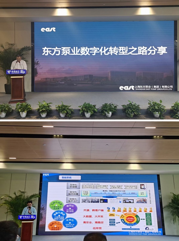 由寶山區經濟委員會和寶山電信局主辦、東方泵業集團協辦的“2021年寶山區產業經濟數字化轉型培訓會”5月27日下午在寶山賓館召開,上海東方泵業(集團)有限公司董事長吳永旭、董事長助理吳俊力出席會議並致辭。