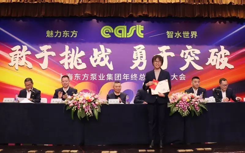 12月31日 下午,東方泵業在上海美蘭湖國際會議中心隆重召開了以“敢於挑戰,勇於突破,奮力開創企業高質量發展新局麵”為主題的2024年終總結表彰大會。集團高層領導、各部門負責人及優秀員工代表齊聚一堂,共同回顧過去一年的奮鬥曆程,分享成功的喜悅,並展望未來的發展方向。